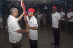 Wilber Pérez, gloria del deporte, entregó la bandera a Emilio Matos, director de Inspección del Inder, quien la depositó en manos del capitán Carlos Alejandro Rivera, escoltado por Adis Yudith Espinel y Rafael Socarrás. VER MÁS