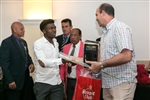 La Habana.- ARICHEL Hernández Moro recibió su premio como mejor jugador del año 2019 junto a otros destacados atletas y árbitros tras la conclusión del IX Congreso de la Asociación de Fútbol de Cuba (AFC).