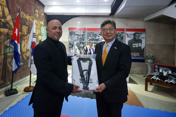 La Habana.- EL EMBAJADOR de Corea del Sur en Cuba, Lee Ho-yul, entregó hoy un kit de atleta, entre otros implementos, como parte de un donativo al taekwondo nacional, gesto de profundo simbolismo y cooperación.