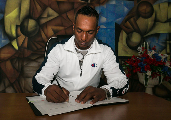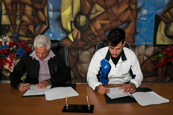 Ambos peloteros firmaron la transacción junto al presidente de la Federación Cubana de esa disciplina, Higinio Vélez.