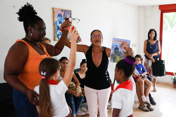 No solo de Aponte se habló en la Escuela de Gimnasia. La Balada de los dos abuelos, del poeta nacional Nicolás Guillén, también formó parte del momento y resultó especial escuchar el poema es esas voces infantiles.