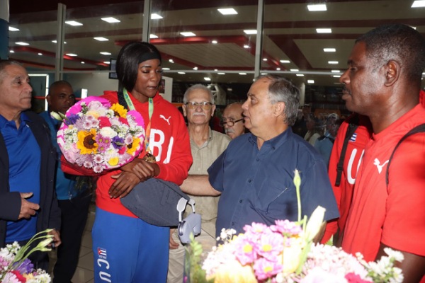 Fue recibida en el aeropuerto por las autoridades deportivas cubanas, encabezadas por el presidente del Inder, Osvaldo Vento Montiller.
