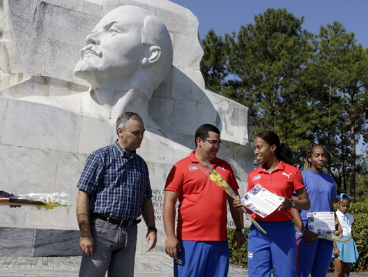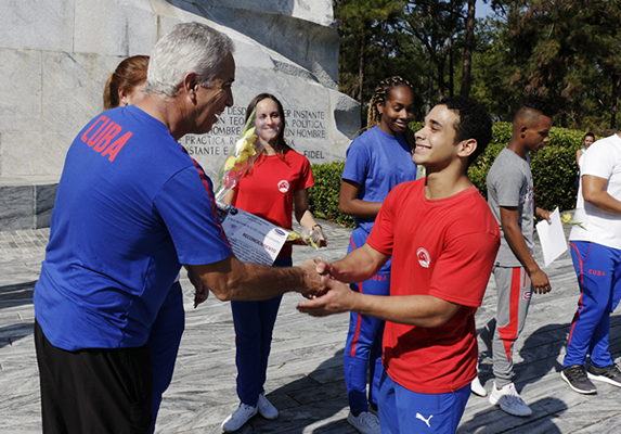 Encabezado por el presidente del Inder, Osvaldo C. Vento Montiller, y otros directivos del organismo, el homenaje ratificó la voluntad de un buen desempeño en los Juegos Panamericanos de Lima e incluyó el aporte artístico del coro Cascabelito, de la Casa de Cultura de Arroyo Naranjo.