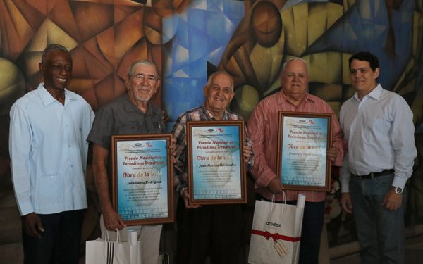 La Habana.- IVÁN López Rodríguez, Juan Moreno Hernández y Francisco Pedro Soriano recibieron hoy el Premio Nacional de Periodismo Deportivo a la Obra de la Vida «por su reconocido prestigio como profesionales en el sector y su significativa trayectoria en defensa de los valores del deporte revolucionario».