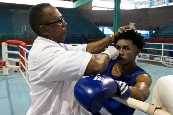 Añadió que esa acción fue incorporada una vez creadas todas las condiciones para ello, desaparecidos por completo dolor e inflamación, y ha sido muy bien asimilada por el mejor welter del país, ejemplo de dedicación y respeto a las indicaciones, factores claves en los avances conseguidos.