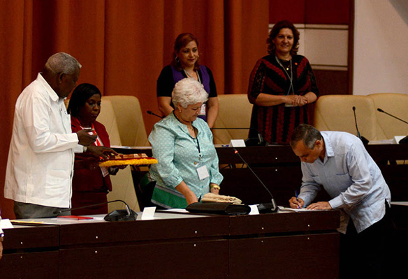 Esteban Lazo Hernández, Presidente de la ANPP, les entregó el sello que identifica su pertenencia al Parlamento cubano.