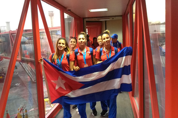 La comitiva estuvo integrada por alrededor de 40 atletas, entrenadores y federativos de los deportes de balonmano, clavados y gimnasia de trampolín, quienes fueron recibidos en la terminal número 3 del Aeropuerto Internacional José Martí por el vicepresidente primero del Instituto Nacional de Deportes, Educación Física y Recreación (Inder), Raúl Fornés Valenciano.