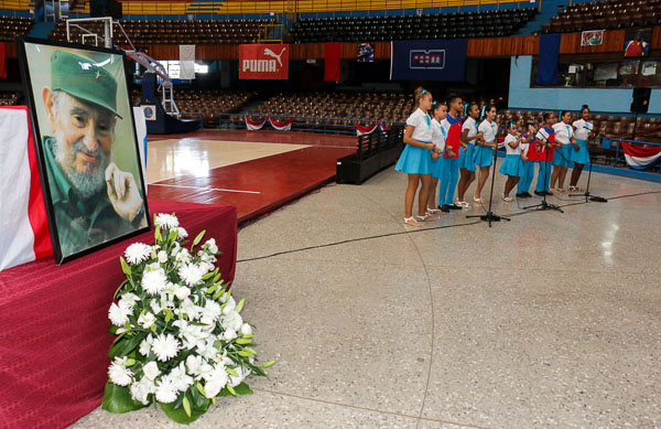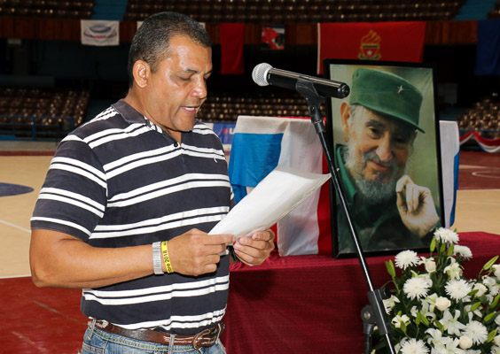 La Habana.- HOMENAJE al Comandante en Jefe constituyó hoy un convite especial por el aniversario 93 del natalicio de Fidel Castro Ruz en la sede central del Instituto Nacional de Deportes, Educación Física y Recreación (INDER)
