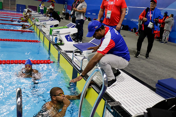 Muy motivado estaba el granmense Pérez en la alberca, donde fue visitado por el vicepresidente primero del Inder, Raúl Fornés Valenciano, quien encabeza la delegación cubana.