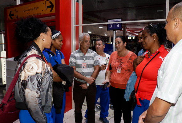 Trabajadores y pasajeros que se encontraban en la terminal aérea también se sumaron al saludo a las líderes de un quehacer que situó a Cuba en el lugar 12, para dejar detrás el 37 ocupado en la versión precedente.