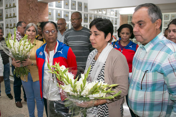Otro momento significativo transcurrió después, en el Panteón de los Veteranos de la necrópolis de Colón, donde el presidente del Inder, Osvaldo Vento Montiller, y otros directivos y trabajadores del organismo, rindieron tributo a la memoria del destacado combatiente.