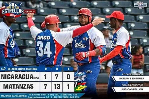 Managua.- CON PAR de cuadrangulares en el primer desafío y otro en el segundo, el paracortos de los Cocodrilos de Matanzas, Erisbel Arruebarruena, se robó los principales focos de la doble cartelera de hoy ante la selección sub-23 de Nicaragua.