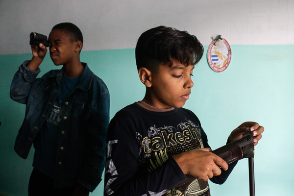 Mientras los muchachos ordenaban sobre las mesas las pocas armas disponibles, nos dijo que «lo primero es la seguridad de ellos y en su libreta de teoría es el tema principal».