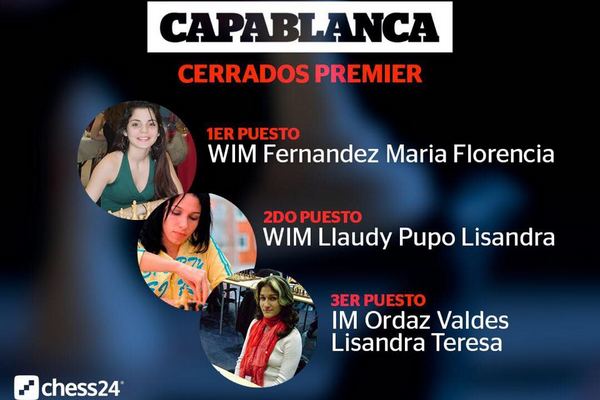 En el Premier, con 10 mujeres como protagonistas, la jovencita argentina Florencia Fernández arrasó con ocho puntos de nueve posibles y dejó segunda a la cubana Lisandra LLaudy con seis y tercera a la reina de la Isla Lisandra Ordaz, dueña de 5,5.