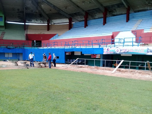 El amplio mantenimiento del principal estadio de Sancti Spíritus también incluye labores en el drenaje, la colocación de hierba donde se necesite, la puesta a tope del bullpen, los baños internos y públicos, así como las cabinas de transmisión.
