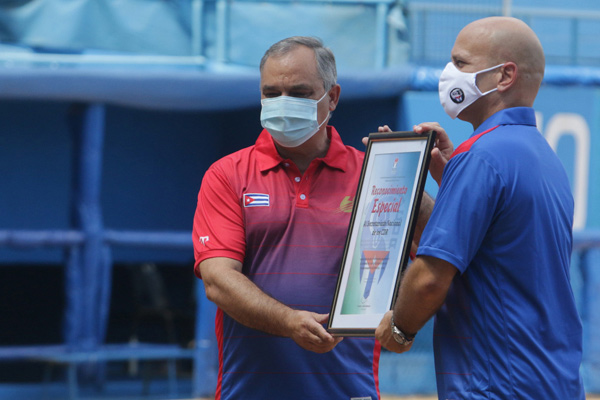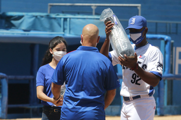 También fue reconocido el veterano avileño Yoelvis Fiss, quien hace pocas horas arribó a la impulsada mil en series nacionales, nada menos que en 21 campañas.