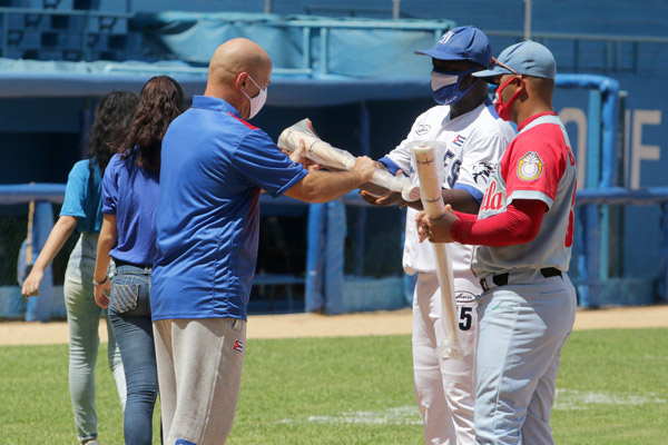 La ocasión fue propicia para que Hernández Nordelo entregara a los capitanes de ambos equipos, Stayler Hernández (IND) y Yorbis Borroto (CAV), bates provenientes del convenio con Canadá, los cuales exhiben las identidades visuales de los CDR y la 60 Serie Nacional.