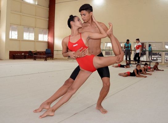 Integra nuestro dúo mixto con Soila Valdés, bajo la dirección de la entrenadora Kenia Fons. Ellas derrochan elogios hacia él por su disciplina y el interés para aprender las nuevas capacidades.