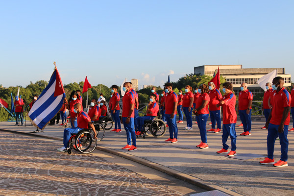 La Habana.- EL MIEMBRO del Buró Político del Partido y Primer Ministro de la República de Cuba Manuel Marrero Cruz abanderó hoy la delegación deportiva que representará a Cuba en los Juegos Paralímpicos de Tokio 2020, del 24 de agosto al 5 de septiembre venidero.