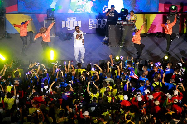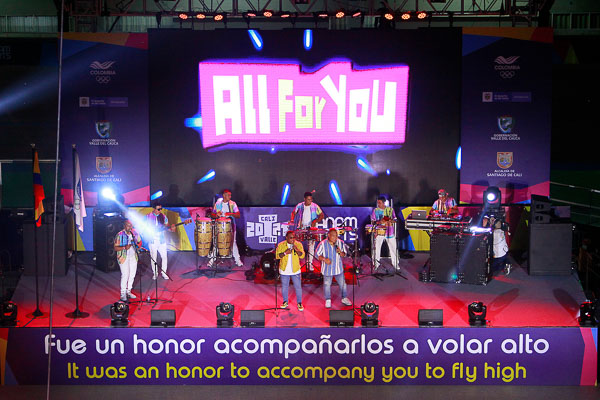 Y prosiguió la música en el cierre del show con las actuaciones de la agrupación de reggaeton Element Black y de Juan Palau, uno de los cantantes más importantes de la música urbana en Colombia. No podía ser de otra manera en la Capital de la Salsa y porque la música seguirá acompañando a nuestros jóvenes deportistas del continente en su eterno vuelo...