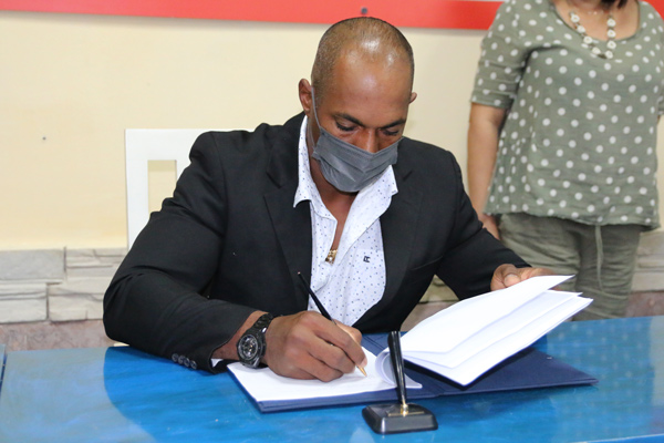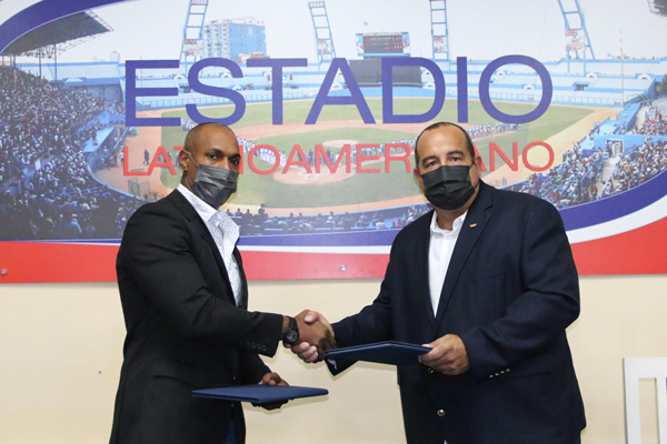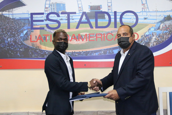Ambos jugadores rubricaron sus documentos en el Salón Adolfo Luque del Estadio Latinoamericano, en presencia de Yovani Aragón, vicepresidente de la Federación Cubana de Beisbol (FCB).