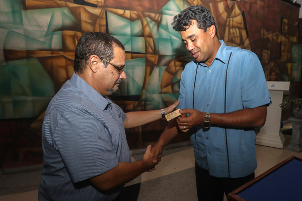 En el lobby del Coliseo de la Ciudad Deportiva capitalina el vicepresidente primero del Inder, Raúl Fornés Valenciano, entregó la distinción al CEO regional de la compañía, Marcelo Cuscuna, quien además la representa en Cuba, y a Héctor Corcho Morales, vicerrepresentante de la entidad germana en nuestro país.