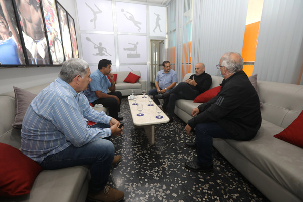 Antes de recibir el homenaje, Cuscuna y Corcho Morales se reunieron con Fornés y Óscar Beltrán, jefe del departamento de deporte para personas con discapacidad del Inder, así como con Agustín Abril, director de organización y programación deportiva.