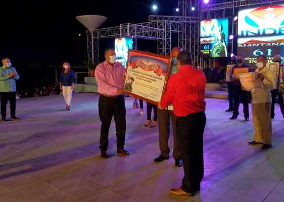 Entregaron los reconocimientos Alys Azahares Torreblanca, vicegobernadora; José Cedeño Tamayo, director general de Educación Física y Deporte para Todos del Inder; y Carlos Charroo Estrada, máximo dirigente del Inder en el territorio.