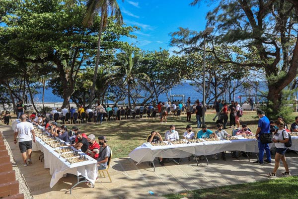 La Habana.- EN EL Hotel Nacional de Cuba ya se comienza a respirar ambiente ajedrecístico. Una simultánea de 146 tableros animó la mañana del domingo con el mar y el fuerte sol caribeño como testigos.