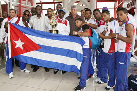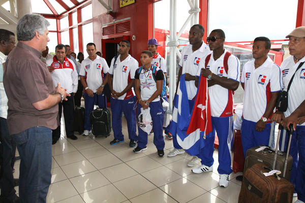 «Todos estamos muy contentos en Cuba por esta victoria, y les deseamos un feliz regreso a la patria en nombre del pueblo, el Gobierno y el movimiento deportivo cubano», puntualizó acompañado por el presidente del INDER Christian Jiménez y otros directivos de ese organismo.