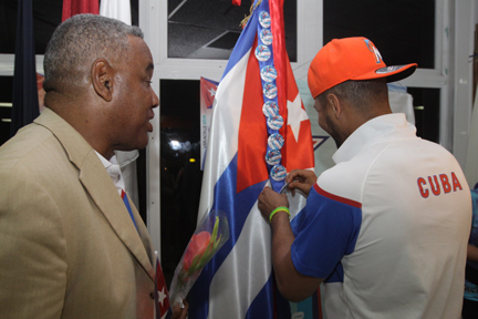 Antes el slugguer Alfredo Despaigne agradeció por la bienvenida, a la vez que destacó que «fuimos a hacer lo mejor por nuestra patria, por nuestra bandera y cumplimos».