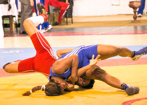Camagüey.- ESPECTACULAR pegada de Yowlys Bonne (GTM) sobre Davián Quintana (CMG) cerró la tercera fecha competitiva de los nacionales de lucha libre en la sala polivalente Rafael Fortún Chacón, en esta ciudad.