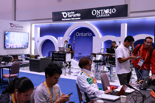 En el Centro de Exposiciones, con más de un millón de pies cuadrados y también escenario para varios deportes, los enviados para reseñar la cita viven su “competencia”, extendida además a las áreas creadas en cada instalación.