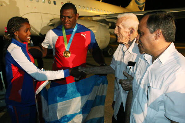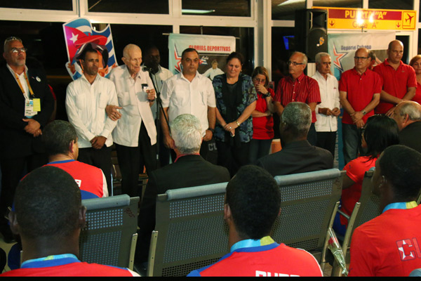 «Ustedes son patriotas, lucharon por lauros y victorias, y eso lo siguió toda Cuba, por lo cual ahora los recibe con todo el orgullo por el esfuerzo y voluntad en su labor realizada», expresó el también asesor del presidente de los Consejos de Estado y de Ministros en acto celebrado en la terminal 5 del aeropuerto internacional José Martí durante la noche de ayer.