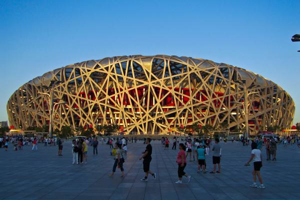 Proyectarlo fue un desafío estético y estructural emprendido por los arquitectos suizos Jacques Herzog y Pierre de Mouron, de conjunto con el artista chino Ai Weiwei, y clasifica como una de las grandes construcciones de la historia.