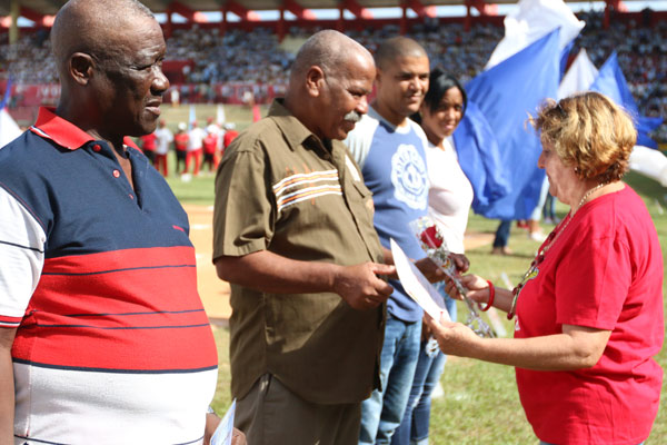 Un saludo a la membresía vinculada con la conquista de la Revolución, del secretariado del Sindicato Nacional de Trabajadores de la Educación, la Ciencia y el Deporte (SNTECD) por la fecha, fue recibido con beneplácito por miles de asistentes a la gala en el estadio beisbolero Victoria de Girón del territorio yumurino.