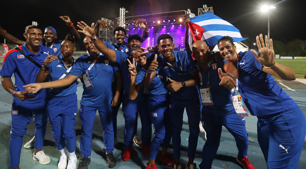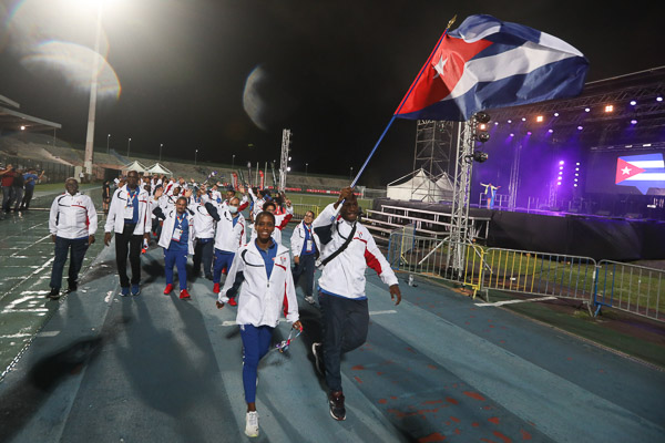 Bajo lluvia desfilaron las delegaciones de los 29 países participantes en la cita, resultando la cubana una de las más numerosas y ovacionadas por el público presente.