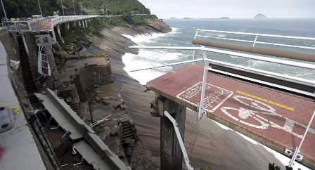 A raíz del fuerte oleaje que golpea el peñasco sobre el cual se extiende la ciclovía, de 3,9 kilómetros de largo y 2,5 metros de ancho, un pedazo de unos 50 metros de extensión se desprendió de los pilares sobre los que se apoyaba y al menos cinco personas cayeron al mar.