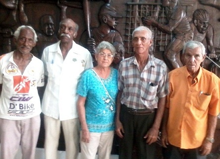 En otro momento de la jornada los ocho santiagueros protagonistas de aquella hazaña que han sobrevivido al paso de los años se trasladaron al Cementerio Santa Ifigenia y colocaron sendas ofrendas florales en la tumba donde reposan los restos de nuestro Héroe Nacional, además de visitar el Panteón de los Deportistas.