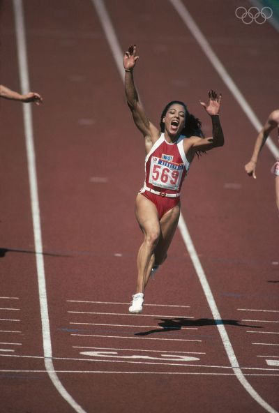 Su compatriota Jackie Joyner venció en salto de longitud y heptatlón, este con marca del orbe, y Florence Griffith, otra de ese país, dominó los 100 y 200 metros con récords universales, además de añadir oro en relevo corto y plata en 4x400.