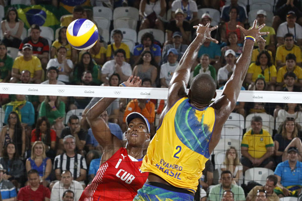 Río de Janeiro.- LOS CUBANOS Nivaldo Díaz y Sergio González derrotaron sensacionalmente a la dupla brasileña de Pedro Solberg y Evandro Oliveira en el torneo olímpico de voleibol de playa para dejar atónito a un graderío repleto que enmudeció al ver en la pizarra un irremediable marcador: 24-22, 21-23 y 15-13.