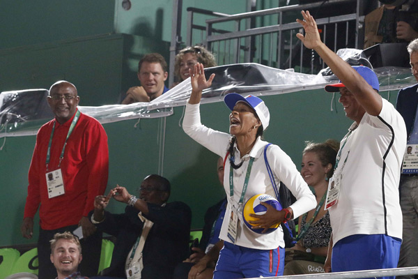 Yumilka Ruiz, una de las Morenas del Caribe campeona olímpica, estuvo en las gradas alentándolos, lo que Sergio y Nivaldo agradecieron mucho y le lanzaron el balón con el cual anotaron el tanto 15 en el tie-break, mientras un silencio sepulcral se apoderó de un escenario que minutos antes pareciese el Sambódromo.