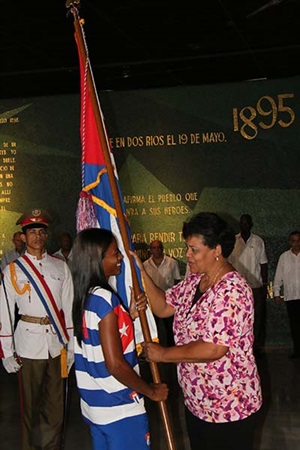 El juramente precedió a la entrega del estandarte por Olga Lidia Tapia, miembro del Secretariado del Comité Central, a la multilaureada corredora Omara Durand, escoltada por el sprinter Lenier Savón y el discóbolo Leonardo Díaz.