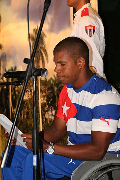 «Marchamo con plena convicción de la victoria», concluyó en su lectura el subcampeón en Londres 2012 y recordista mundial de los 100 metros libre categoría S6 en el acto realizado en el Memorial José Martí de la Plaza de la Revolución.