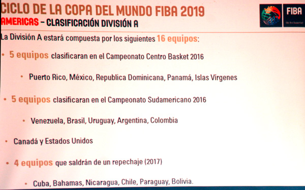 Momentos después el director Ejecutivo de FIBA Américas, Alberto García, explicó sobre la implementación del calendario mundialista en el que se verán involucrados más de 150 de las 212 naciones afiliadas a la organización.