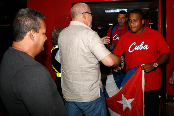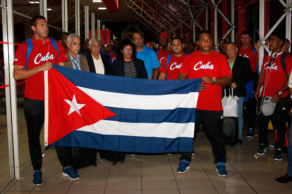 Con la bandera cubana portada por el lanzador derecho Lázaro Blanco, incluido en el Todos Estrellas del torneo, y por el toletero Alfredo Despaigne, hicieron su entrada en el aeropuerto Internacional José Martí, donde fueron recibidos por el presidente del INDER Antonio Becali.