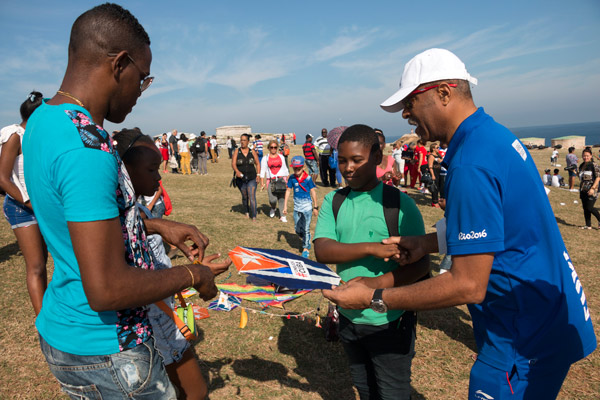 Alberto, junto a otras luminarias como Estela Rodríguez, Zoila Barros, Rodolfo Puente, Tomás Herrera, entre tantos, compartieron con los pequeños, sus familiares y profesores, mientras los papalotes surcaban el cielo azul habanero portando la consigna #NoMásBloqueo.