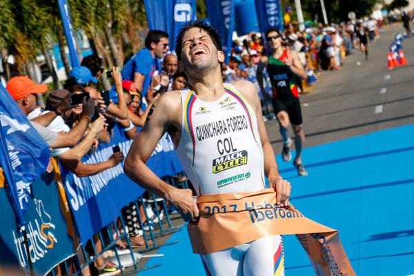 Quinchara cubrió la prueba de 750 metros de natación, 20 kilómetros de ciclismo y cinco de carrera pedestre, en un tiempo de 55.29 minutos.