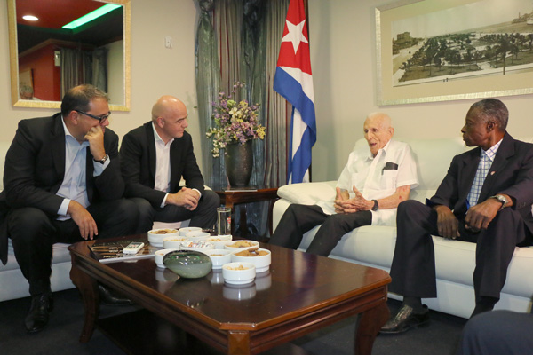 «Vamos a seguir trabajando juntos, impulsando proyectos importantes», añadió poco antes de entregar un gallardete y una chamarreta con el número 9 destinados al Presidente de los Consejos de Estado y de Ministros Raúl Castro.