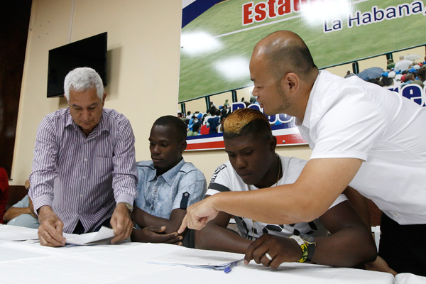 Moinelo y Colás rubricaron además en presencia de Higinio Vélez, presidente de la Federación Cubana de Béisbol, Yovani Aragón, director nacional interino, y Ramiro Domínguez, director jurídico del INDER.